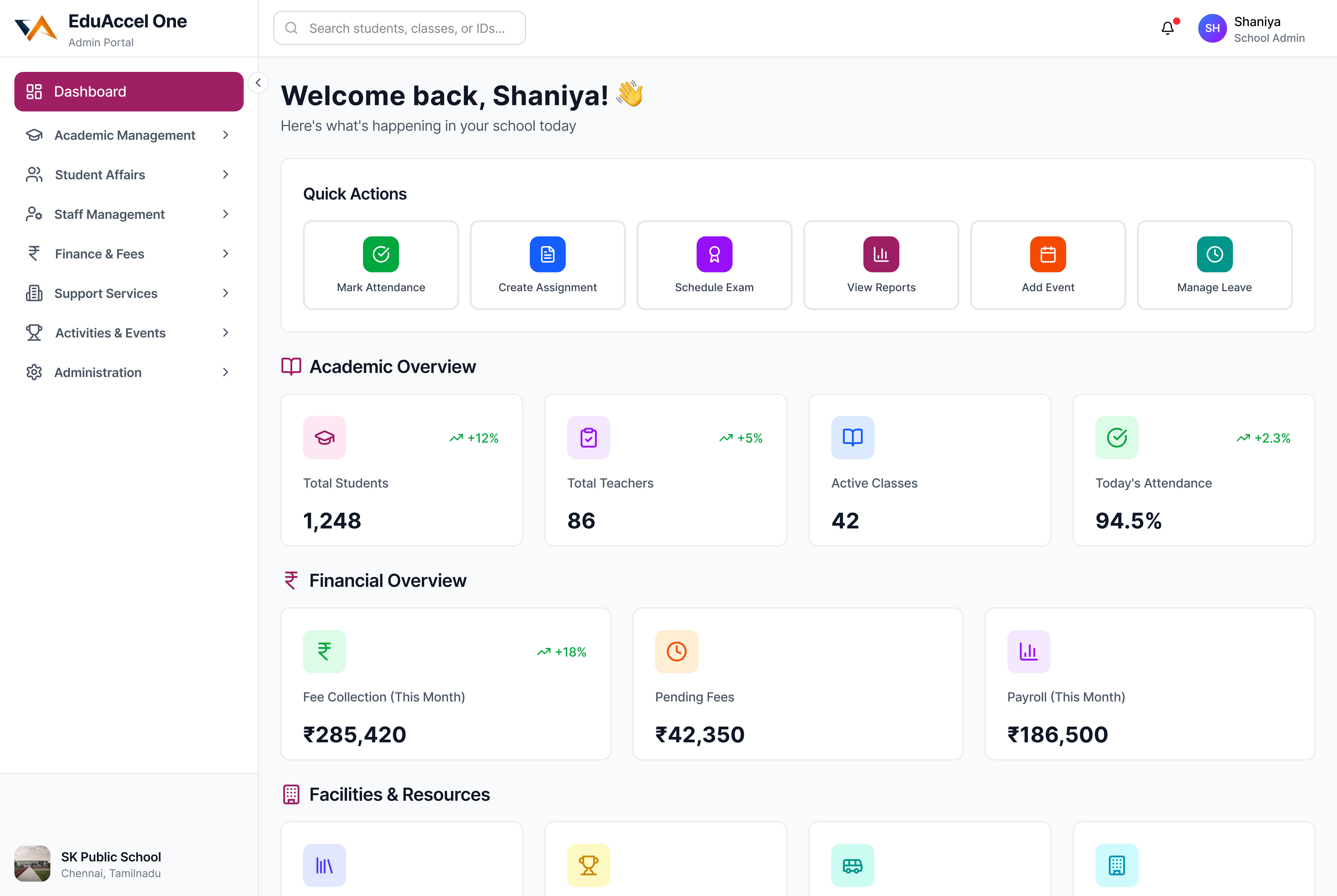 V-Accel implemented a centralized School Management System to unify academic and administrative workflows across all campuses.